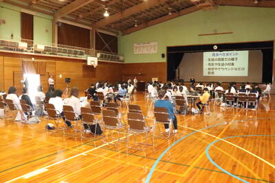 8月20日(水) 夏季休業後全校集会を実施しました。校長先生からは、どのようなことでも「振り返り」を大切に、学校生活を過ごしてほしいなどとお話がありました。