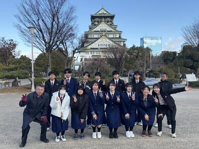見学旅行最終日は大阪城を見学。天守閣からの景色を楽しみ、歴史展示を興味深そうに眺める生徒が多く、社会科で学んだ内容と結びつける場面も見られました。