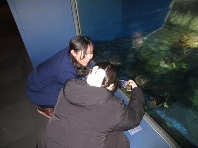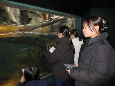 その後の海遊館では、大きなジンベエザメに歓声が上がり、水槽をのぞき込む表情はとてもいきいきとしていました。友達同士で生き物について話し合ったり写真を撮り合ったりと、和やかな雰囲気の中で旅の最後を飾りました。