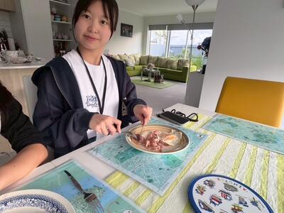 10月29日(水) 海外研修3日目です。こちらにきて初めて、青空の爽やかな朝を迎えています。それぞれホストファミリーと充実した夜を過ごし、リラックスした様子で登校しました。勝手がわかってきたのもあり、RIVERHEADの子どもたちに溶け込んで授業を受けています。